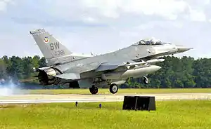 - ↑ Aircraft is General Dynamics F-16C Block 50D serial 91-375, taken in December 2006.