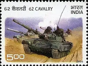 The 62nd Cavalry is an armoured regiment of the Indian Army and was raised by Lt Col RS Butalia on 31 Mar 1957 at Ambala cantonment.[1] Drawn from the existing cavalry regiments of the time, the 62nd Cavalry was recruited from Sikh, Jat and Dogra communities.[5]