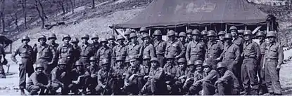 During this time, rumors swirled that the regiment would be sent to live combat, while officers had already been moved to act as observers.[20] On 22 September 1944, the 65th Infantry landed in France. The regiment was then moved to Peira Cava in the Maritime Alps, where it entered in action on 13 December 1944, the first time a Puerto Rican unit saw action in Europe.[4] The first offensive attack came the following day in response to enemy fire, with Lieutenant Colonel Juan César Cordero Dávila allowing Capt. Efraín Sánchez Hidalgo and Company L to return fire.[21]