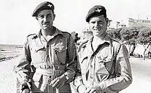On 18 February it was announced that the 6th Airborne Division would be disbanded when they left Palestine.[78] The 1st Parachute Brigade handed over Haifa to the 1st Guards Brigade on 6 April.[79] Gradually the division's units left the country. The division's last units, comprising part of divisional headquarters, the 1st Parachute Battalion and the 1st Airborne Squadron Royal Engineers, departed on 18 May.[78]