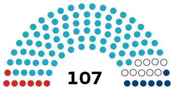 The convocation was formed shortly after the 2016 Kazakh legislative election where 98 members of the Mazhilis were elected based on the party list through proportional representation, while the 9 seats are reserved to the indirectly elected members of the Assembly of People. The legislative term of the Mazhilis ended on 30 December 2020 while the meeting of the members of the Senate of Kazakhstan continued until 14 January 2021.[2][3]