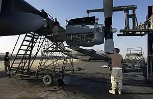 ![]() Members of the squadron change a T56 engine on a C-130 Hercules in Iraq in 2003 | |