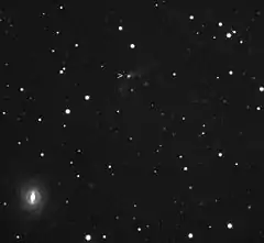 74P/Smirnova–Chernykh is a periodic comet in the Solar System. It fits the definition of an Encke-type comet with (TJupiter > 3; a < aJupiter),[4] and is a Quasi-Hilda comet.[5] It was discovered in late March 1975 by Tamara Mikhajlovna Smirnova while examining exposures from the Crimean Astrophysical Observatory.[6] In the discovery images the comet had an apparent magnitude of ~15.[6] In the year of discovery, the comet came to perihelion on August 6, 1975.[6]