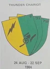 7 Division's major training exercises were held at Lohatla Army Battle School in the Northern Cape, called Quick Silver and Thunder Chariot, one of the most notable was the Thunder Chariot of 1984:[7]