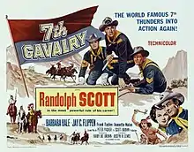 7th Cavalry is a 1956 American Western film directed by Joseph H. Lewis based on a story, "A Horse for Mrs. Custer", by Glendon Swarthout set after the Battle of the Little Big Horn. Filmed in Mexico, the picture stars Randolph Scott and Barbara Hale.[2]