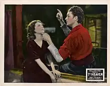 7th Heaven (also known as Seventh Heaven) is a 1927 American silent romantic drama directed by Frank Borzage, and starring Janet Gaynor and Charles Farrell. The film is based upon the 1922 play Seventh Heaven, by Austin Strong and was adapted for the screen by Benjamin Glazer.[3] 7th Heaven was initially released as a standard silent film in May 1927. On September 10, 1927, Fox Film Corporation re-released the film with a synchronized Movietone soundtrack with a musical score and sound effects.