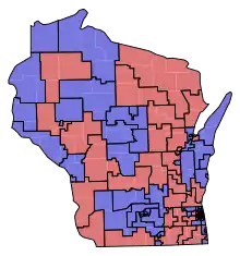- ↑ Democrat Michael P. Early (30th District) resigned after he was appointed secretary of the Wisconsin Department of Veterans Affairs.