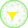 | The dual tiling is called an order-4-8 kisrhombille tiling, made as a complete bisection of the order-4 octagonal tiling, here with triangles are shown with alternating colors. This tiling represents the fundamental triangular domains of [8,4] (*842) symmetry. | |