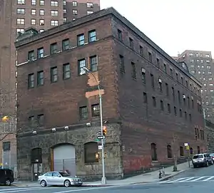 The 99th Street station was a local station on the demolished IRT Third Avenue Line in Manhattan, New York City. The station was originally built by the Manhattan Railway Company on December 30, 1878, and later had two levels. The lower level serving local trains was built first, and had two tracks and two side platforms. The upper level, built as part of the Dual Contracts had one track that bypassed the station and served express trains. This station closed on May 12, 1955, with the ending of all service on the Third Avenue El south of 149th Street.[2] South of the station were connecting tracks to the 98th Street Yard. The station was also located next to Substation 7 an old IRT substation designed not only in order to electrify the Third Avenue Line, but the Second and Ninth Avenue elevated lines as well. Later it even served as a power source for the IRT Lexington Avenue Line from 1918 until the 1970s.[3] The substation is still owned by the MTA and has been listed on the National Register of Historic Places since February 9, 2006.[4]