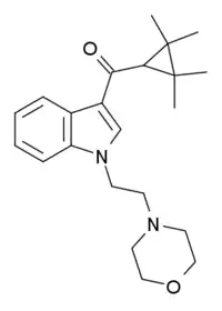 1. Frost JM, Dart MJ, Tietje KR, Garrison TR, Grayson GK, Daza AV, et al. (January 2010). "Indol-3-ylcycloalkyl ketones: effects of N1 substituted indole side chain variations on CB(2) cannabinoid receptor activity". Journal of Medicinal Chemistry. 53 (1): 295–315. doi:10.1021/jm901214q. PMID 19921781.