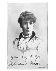 Amelia Garland Mears was born in Freshford, County Kilkenny in 1842. Mears lived in the town land Freshford Lots in the Crannagh Barony.[1] She was one of five children, with two older sisters, Elizabeth and Jane, an older brother John and a younger brother Charles.[2] Mears's parents' "ancestors came over to Britain with William the conqueror".[3] The Garland family left Ireland and moved to Liverpool around 1848.[3] Mears spent much of her life in the north of England. The family moved to Dronfield, Derbyshire, as her father, John Garland, secured a job there. He was the second master of the grammar school Dronfield, near Sheffield for 25 years.[4] He died on 1 December 1878[4] and was the author of many unpublished poems.