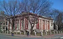Lowell's health declined slowly and his lifelong hearing problems worsened. He resigned his position as Harvard's president on November 21, 1932, and served through the following summer.[60] During his years as president, enrollment at the College expanded from 3,000 to 8,000 and its endowment grew from $23 to $123 million. Lowell's construction projects, some based on the Freshman Halls and the College system, but including Widener Library, the Memorial Church and many others, had transformed the university's infrastructure.[61] Also among the new campus buildings of Lowell's tenure was the President's House (later called Loeb House) at 17 Quincy Street, which Lowell commissioned from his cousin Guy Lowell. It remained the residence of succeeding Harvard Presidents until 1971.