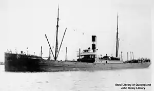1,940 GRT cargo steamship Alabama, built in 1879 by Andrew Leslie & Co at Hebburn-on-Tyne as Tantallon. She sailed under successive owners, names and flags as Raymondos and Raymond before being bought by Watts, Watts & Co in 1899 and renamed Alabama. James Paterson & Co of Melbourne, Victoria bought her in 1907. She ran aground in 1916 but suffered little damage. North China Steamship Co of Tientsin bought her in 1925 and renamed her Pei Tai. She was scrapped in 1935.