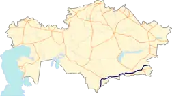 A2 is a national highway in Kazakhstan that runs from the border of Uzbekistan to the selo of Horgos with a total length of 1,292 kilometres (803 mi).[1] It is part of the European route E40 and Asian Highway 5.