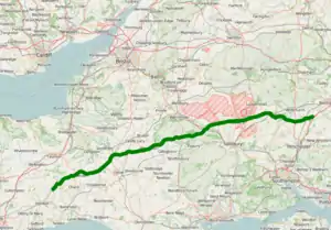 | 21.5 miles (34.6 km)[81] | Hungerford, Salisbury A338 Marlborough (A346) | |
