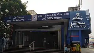 AG – DMS is an underground metro station on the North-South Corridor of the Blue Line of Chennai Metro in Chennai, India. This station serves the neighbourhoods of Teynampet and T. Nagar.