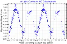 A light curve for AO Cassiopeiae, plotted from Hipparcos data