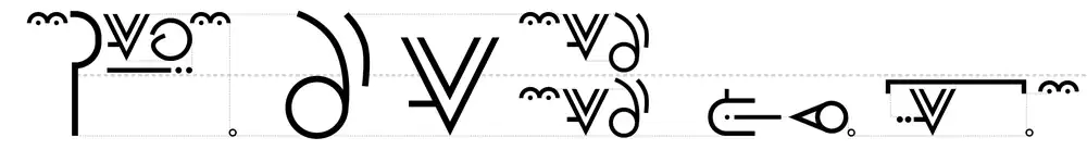 There are five diacritics, of which one is a movement diacritic. They are: Hinge (, ), Rotational (, ), Rattle (, ), Flutter (, ) and Edge.[11]