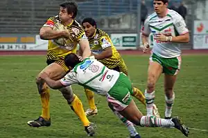 Teddy Sadaoui and Amar Sabri playing for Carcassonne in a match against Lezignan (January 2010).
