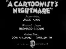 A Cartoonist's Nightmare is a 1935 Warner Bros. theatrical cartoon short in the Looney Tunes series, starring Beans the Cat in his first solo film.[2] The film was directed by Jack King and was released on September 21, 1935.[3]
