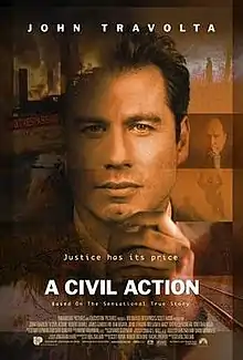 A Civil Action is a 1998 American legal drama film directed and written by Steven Zaillian and starring John Travolta with Robert Duvall, James Gandolfini, Dan Hedaya, John Lithgow, William H. Macy, Kathleen Quinlan, and Tony Shalhoub. Based on the 1995 book of the same name by Jonathan Harr, it tells the true story of a court case about environmental pollution that took place in Woburn, Massachusetts in the 1980s. The film and court case revolve around the issue of trichloroethylene, an industrial solvent, and its contamination of a local aquifer. A lawsuit was filed over industrial operations that appeared to have caused fatal cases of leukemia and cancer, as well as a wide variety of other health problems, among the citizens of the city. The case involved is Anne Anderson, et al., v. Cryovac, Inc., et al.. The first reported decision in the case is at 96 F.R.D. 431 (denial of defendants' motion to dismiss). Duvall was nominated for the Academy Award for Best Supporting Actor for his performance.