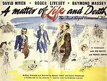 Written, produced and directed by Michael Powell and Emeric Pressburger, the film stars David Niven, Roger Livesey, Raymond Massey, Kim Hunter and Marius Goring. The film was originally released in the United States under the title Stairway to Heaven, which derived from the film's most prominent special effect: a broad escalator linking Earth to the afterlife.
