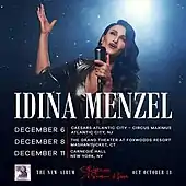 On October 7, 2019, Menzel announced that she would perform a one night only concert at New York City's Carnegie Hall on December 11, 2019.[3] The announcement came following the most prior announcement about her seventh studio album and second holiday album Christmas: A Season of Love. On October 9, 2019, Menzel announced two additional shows set for December 6, 2019 at Caesars Atlantic City in Atlantic City, NJ and December 8, 2019, at the Grand Theatre at Foxwoods Resort Casino in Mashantucket, CT.[4]