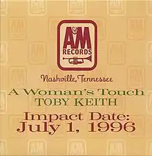 "A Woman's Touch" is a song co-written and recorded by American country music artist Toby Keith. It was released in July 1996 as the second single from his 1996 album Blue Moon. It peaked at number 6 in the United States, and number 11 in Canada. Keith wrote this song with Wayne Perry.