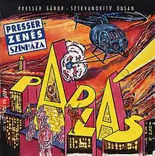 A padlás (Hungarian: [ɒ ˈpɒdlaːʃ]; English: The Attic) is a Hungarian musical with music by Gábor Presser and lyrics by Dusán Sztevanovity. The musical also contains additional text by Péter Horváth. It premiered in the Comedy Theatre, Budapest on 29 January 1988, directed by László Marton. In addition to its continuing successful performance there, it has also been performed in several other Hungarian theatres, as well as in other countries. The musical tells the story of a burglary, of two young people in love, and of four ghosts looking for the other world.