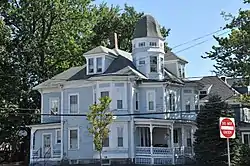 The Aaron Martin House is a historic house in Waltham, Massachusetts. The 2+1⁄2-story wood-frame house was built in the 1890s by Waltham Watch Company employee and real estate speculator Aaron Martin. It is a particularly well-preserved local example of Queen Anne styling. It has a variety of projections, gables, and porches, in a manner typical of the style, as well as a 3+1⁄2-story tower with a bell-shaped roof. Its porches are elaborately decorated with gingerbread woodwork.[2]