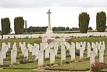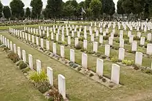 A notable interment is Leonard James Keyworth, a corporal in the London Regiment who died of wounds at Abbeville on 10 October 1915. He was a recipient of the Victoria Cross, having been awarded it earlier in the year for an action at Givenchy.[3][1]