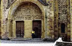 The Abbey Church of Sainte-Foy in Conques, France, was a popular stop for pilgrims traveling the Way of St. James to Santiago de Compostela, in what is now Spain. The main draw for medieval pilgrims at Conques were the remains of Sainte-Foy, a young woman martyred during the fourth century. The relics of Sainte-Foy arrived in Conques through theft in 866. After unsuccessful attempts to acquire the relics of Saint Vincent of Saragossa and then the relics of St. Vincent Pompejac in Agen, the abbey authorities set their sights on the relics of Sainte-Foy at the ancient St. Faith's Church, Sélestat.[1] The Conques abbey opened a priory next to the shrine in Sélestat. A monk from Conques posed as a loyal monk in Agen for nearly a decade in order to get close enough to the relics to steal them.[2] The abbey church is a listed monument since 1840.[3]