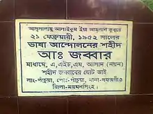 Abdul Jabbar (11 October 1919 – 21 February 1952) was a protester who was killed during the Bengali language movement in 1952 that took place in the erstwhile East Pakistan (currently Bangladesh).[1][2] He is considered a martyr in Bangladesh.[2][3]