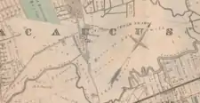 The land owned by Abel Smith stretched far; in a 1908 edition of The New York Times, the farm is said to have been bisected by Secaucus Road, and "between the Paterson Plank Road on the north, the Penn Horn Creek on the East, the lands of S. Jacobs on the south, and the old Secaucus racetrack to the west."[1]