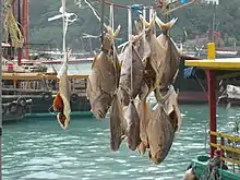 Prior to the 1950s, salt fish was the major catch sold at Aberdeen.[3] Today, Aberdeen is the only fishing port in the Southern District in Hong Kong. It continues to play an important role in the fishing industry. Over one-third of the fish caught in Hong Kong are caught in Aberdeen port.[3] During the Fishing Moratorium Period (June and July), more than 1,000 fishing vessels are anchored at the Aberdeen Typhoon Shelter.[3]