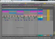 Arrangement View offers a horizontal music production timeline of Clips that is more similar to a traditional software sequencer interface. The Arrangement View is used for recording tracks from the session view and further manipulating their arrangement and effects. It is also used for manual MIDI sequencing.[21]