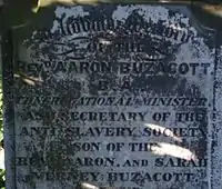 Memorial to Aaron Buzacott, Secretary of the Anti-Slavery Society, now Anti-Slavery International.