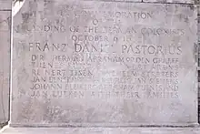 Abraham Op den Graeff and his family were one of the original thirteen families which founded Germantown.[2] There he helped established the linen industry, winning the first Governor's prize from William Penn, a cousin of Abraham op den Graeff,[4][5] in 1686 for the finest piece of linen woven in the Province.[6] In 1688, Abraham along with three others signed the first organized religious petition against slavery in the colonies, the 1688 Germantown Quaker Petition Against Slavery. In 1689, he was one of the original charter grantees for the settlement, and that year was elected to the Provincial Assembly, representing the settlement until 1692.[7][8] He would also serve as a burgess of Germantown.[9]