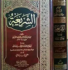 Imam al-Ajurri was an Islamic scholar from 10th century (4th century AH). He came from Darb al-Ajurr in western Baghdad, after studying with many scholar in Iraq he moved to Mecca and start teaching there. He lived in Mecca for 30 years until he died there in 970 / 320 AH.[1] Al-Ajurri commonly known as Shafi'is scholar, while Ibn Abi Ya'la stated he is a Hanbali.[2] Among his teacher is Al-Hafiz Abul Muslim Ibrahim bin Abdillah bin Muslim Al-Bashri Al-Kajji (d.292 H) and also Abu Bakr Abd-allah bin Sulayman bin Al-Ash’ath As-Sijistani (d.316 H) one of sheikh in Baghdad, the son of Imam Abu Dawud of Sunan Abu Dawud.[3] While one of his famous student is Abu Nu'aym al-Asbahani who transmitted hadith from him.