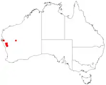 The tree typically growing to a height of 2 to 5 metres (7 to 16 ft) and has finely fissured bark. It flowers from April to August or October to December producing yellow flowers. The plant will grown in sandy or loamy soils on plains and hillsides.[1]
