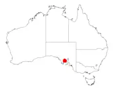 The shrub has a limited distribution in the north eastern part of the Eyre Peninsula of South Australia from around Kimba and Cowell where it is usually situated on small quartzite hills often combined with limestone or ironstone bedrock and growing in gravelly loams and sandy soils that are well drained.[1]