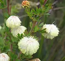 Acacia mitchellii, commonly known as Mitchell's wattle, is an erect or spreading shrub which is endemic to Australia.[2] It grows to up to 2 metres high and has small bipinnate leaves. The pale yellow globular flowerheads appear in groups of 1 to 3 in the axils of the phyllodes followed by straight or curved seed pods which are 1.8 to 5 cm long and 4 to 8 mm wide.[3]