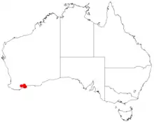 It is native to a small area in the Great Southern and Goldfields-Esperance regions of Western Australia from around Jerramungup in the west to Ravensthorpe in the east where it typically is found growing in sandy soils over quartzite.[1] The range is limited to the Fitzgerald River National Park where it forms part of scrubland or heathland communities that are dominated by Eucalyptus tetraptera.[2]
