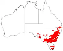 The species occurs in dry sclerophyll forest in South Australia, Victoria, New South Wales and Queensland.[2]