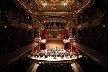 The Academic Symphony Orchestra of the Lviv National Philharmonic named after Myroslav Skoryk[4] was officially formed on September 27, 1902,[5] when the first concert of the newly created collective took place in the Count Stanislav Skarbko Theatre. It had 1,240 seats, a large moving stage (160 m2), a concert organ, and was equipped with electric lighting and central heating. The main conductor of the orchestra was Ludvík Vítězslav Čelanský, who gathered a group of 68 people, the vast majority of whom were graduates of the Prague Conservatory. Henryk Jarecki and Henryk Melcer-Szczawiński worked next to him at the conductor's desk. During the first season, more than 114 concerts were held with the participation of the orchestra. The concert programs included almost all symphonies by Beethoven, symphonic masterpieces by Mendelssohn, Mozart, Schubert, Schumann, Liszt, Dvořák, Bruckner, Mahler, Saint-Saëns, Tchaikovsky, and Richard Strauss.