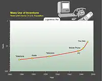 In 1910, during the town planning conference of London, Daniel Burnham noted, "But it is not merely in the number of facts or sorts of knowledge that progress lies: it is still more in the geometric ratio of sophistication, in the geometric widening of the sphere of knowledge, which every year is taking in a larger percentage of people as time goes on."[1] And later on, "It is the argument with which I began, that a mighty change having come about in fifty years, and our pace of development having immensely accelerated, our sons and grandsons are going to demand and get results that would stagger us."[1]
