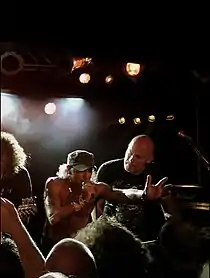 A coincidental meeting between Accept and former T.T. Quick singer Mark Tornillo at this informal jam session meant shortly after Tornillo was announced as the new vocalist.[5]