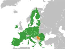 - ↑ "Information relating to the entry into force of the Stabilisation and Association Agreement between the European Union and the European Atomic Energy Community, of the one part, and Kosovo (*), of the other part". EUR-Lex. 24 March 2016. Retrieved 24 March 2016.