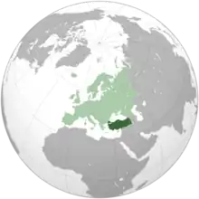 After the Ottoman Empire's collapse following World War I, Turkish revolutionaries led by Mustafa Kemal Atatürk emerged victorious in the Turkish War of Independence, establishing the modern Turkish Republic as it exists today. Atatürk, President of Turkey, implemented a series of reforms, including secularisation and industrialisation, intended to "Europeanise" or Westernise the country.[20] During World War II, Turkey remained neutral until February 1945, when it joined the Allies. The country took part in the Marshall Plan of 1947, became a member of the Council of Europe in 1950,[2][3] and a member of NATO in 1952.[21] During the Cold War, Turkey allied itself with the United States and Western Europe. The Turkish position vis-à-vis Europe has been characterized as "Europe has been an object of desire as well as a source of frustration for Turkish national identity in a long and strained history".[22]