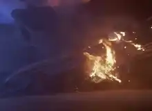 The colossal staging of a crashed Boeing 727 airplane in December 1991, involved creating a complete location set at Piru, California.[7] The derelict fuselage was blown up over a bridge and recreated river and river bed. After the failure of the first explosion, a second rigged explosive realistically recreated the crash scene where the plane is torn apart.[5]